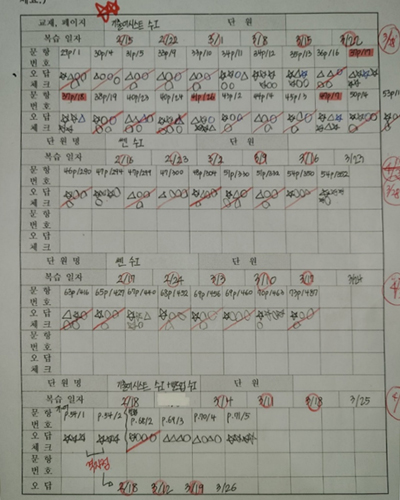 실제로 내원하시면 학생들이 공부한 노트 속지를 보여 드리고 코칭해 드립니다.