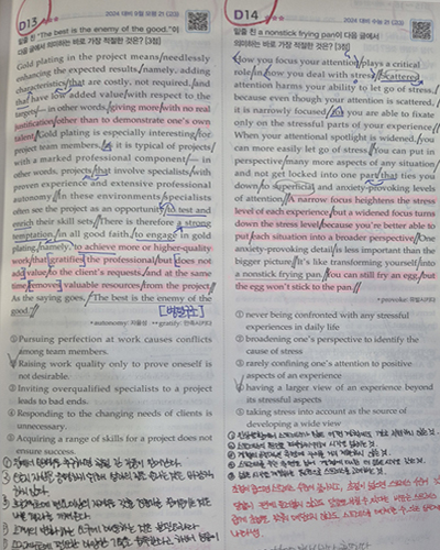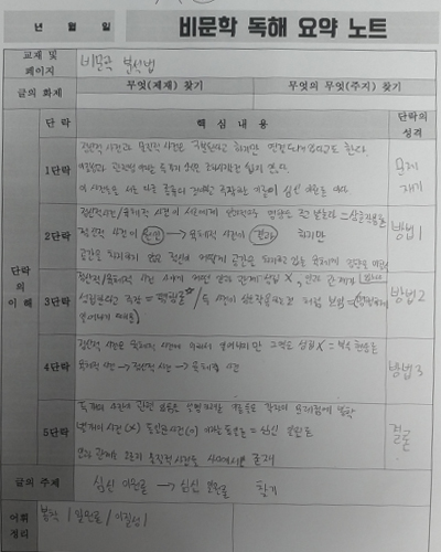 아래 이미지는 학생들이 작성한 실전 노트/오답/분석 자료의 일부 컷입니다.